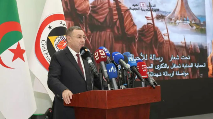 Présidant une cérémonie de remise de grades au profit de 42 agents de la Protection civile, à l’occasion du 71e anniversaire du déclenchement de la glorieuse Révolution de libération nationale, M. Sayoud a souligné “la mobilisation de tous les moyens nécessaires à la protection de la sécurité et du bien-être du citoyen, figurant au centre des priorités”. Il a ajouté que grâce à la conjugaison des efforts, il est désormais possible de “bâtir une société plus sûre et plus résiliente face aux défis”, en s’inspirant de “l’esprit de solidarité et de cohésion qui caractérise les citoyens”. Evoquant les sacrifices des valeureux chouhada, le ministre a rappelé que “les valeurs de sacrifice, de discipline et de loyauté envers la patrie, sur lesquelles s’est fondée l’Algérie, constituent aujourd’hui les principes fondamentaux auxquels adhèrent et s’engagent les institutions de l’Etat, tant civiles que militaires”. Soulignant l’importance du corps de la Protection civile, en tant que “bouclier solide garantissant la sécurité des personnes et des biens”, M. Sayoud a tenu à mettre en avant le souci permanent des hautes autorités du pays, à leur tête le président de la République, M. Abdelmadjid Tebboune, d’assurer un soutien permanent et le développement de ce corps, notamment à travers “le renforcement de ses capacités, la modernisation de ses moyens et l’amélioration des mécanismes de coordination avec ses partenaires”. A ce propos, le ministre a fait savoir que le budget alloué à la Protection civile a augmenté de près de 14% dans le cadre du projet de loi de finances 2026, traduisant l’intérêt qu’accorde l’Etat à ce corps, auquel s’ajoute l’ouverture de nouveaux postes budgétaires. De son côté, le directeur général de la Protection civile, le colonel Boualem Bourelaf a souligné que les progrès réalisés en matière de formation et de modernisation des structures de ce corps, à la faveur de l’intérêt accordé par les hautes autorités du pays, “nous placent devant une lourde responsabilité exigeant mobilisation, efforts constants et amélioration continue de nos performances afin d’être à la hauteur des attentes des citoyens et des défis à venir”. La cérémonie de remise de grades s’inscrivait dans le cadre d’une promotion exceptionnelle au profit des agents de la Protection civile ayant pris part à l’extinction des incendies de l’été dernier, au sauvetage de personnes tombées dans des puits artésiens à Béchar et Médéa, d’une autre personne coincée dans une grotte à Constantine, ainsi qu’au sauvetage d’une personne en mer à Jijel, outre leur intervention héroïque lors de l’accident d’un bus tombé dans l’oued El-Harrach (Alger). De même, plusieurs officiers admis à la retraite en 2025 ont également été honorés, en reconnaissance de leur parcours professionnel exemplaire marqué par le dévouement et l’engagement au service du corps de la Protection civile. Au terme de cette cérémonie, qui s’est déroulée en présence du ministre, wali de la wilaya d’Alger, Mohamed Abdenour Rabehi et du directeur général de la Sûreté nationale, Ali Badaoui, le ministre de l’Intérieur, des Collectivités locales et des Transports a été honoré.